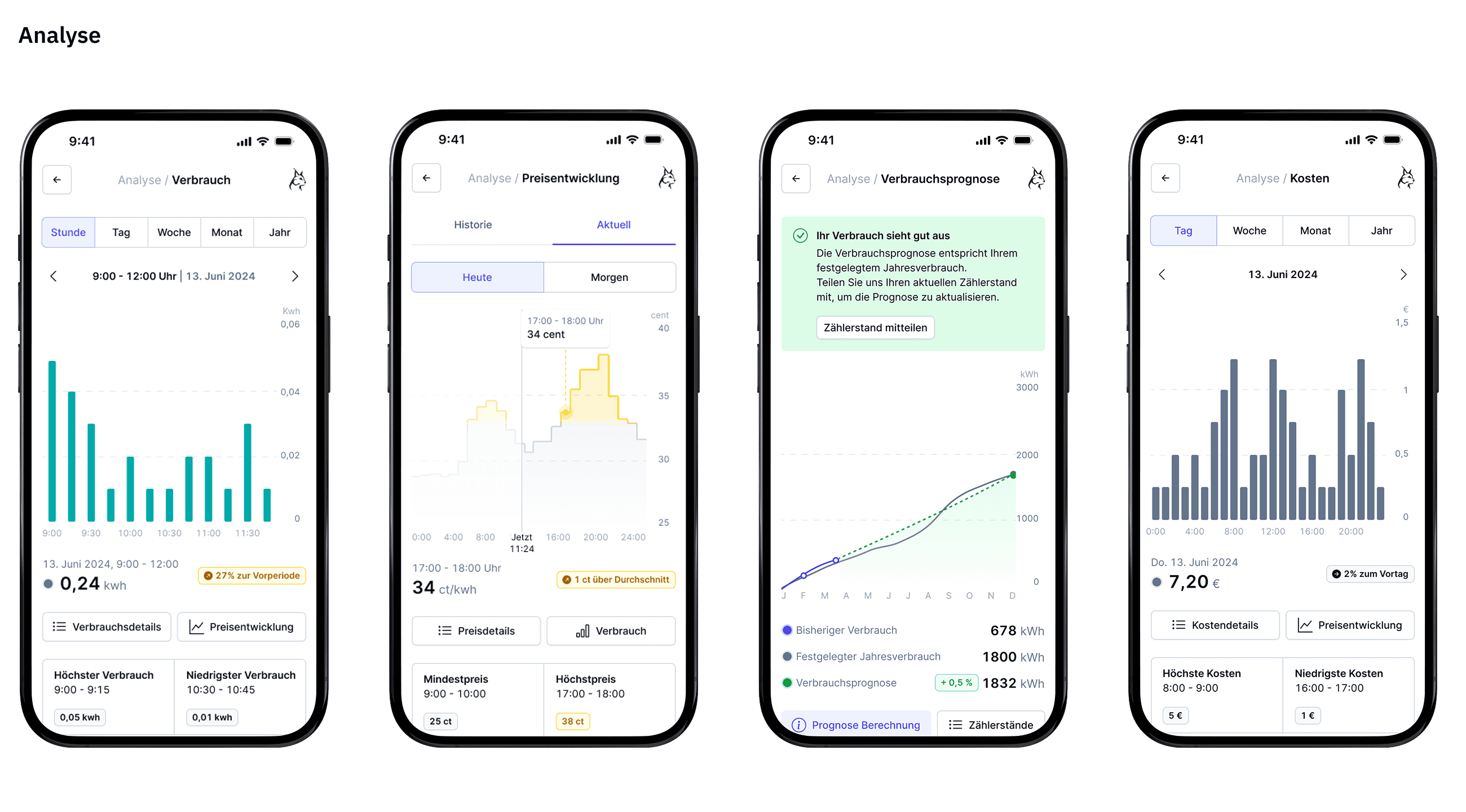 Die App sollte sowohl einfache Aufgaben wie Vertrags- und Datenverwaltung abdecken als auch tiefere Einblicke in Verbrauch und Kosten ermöglichen.